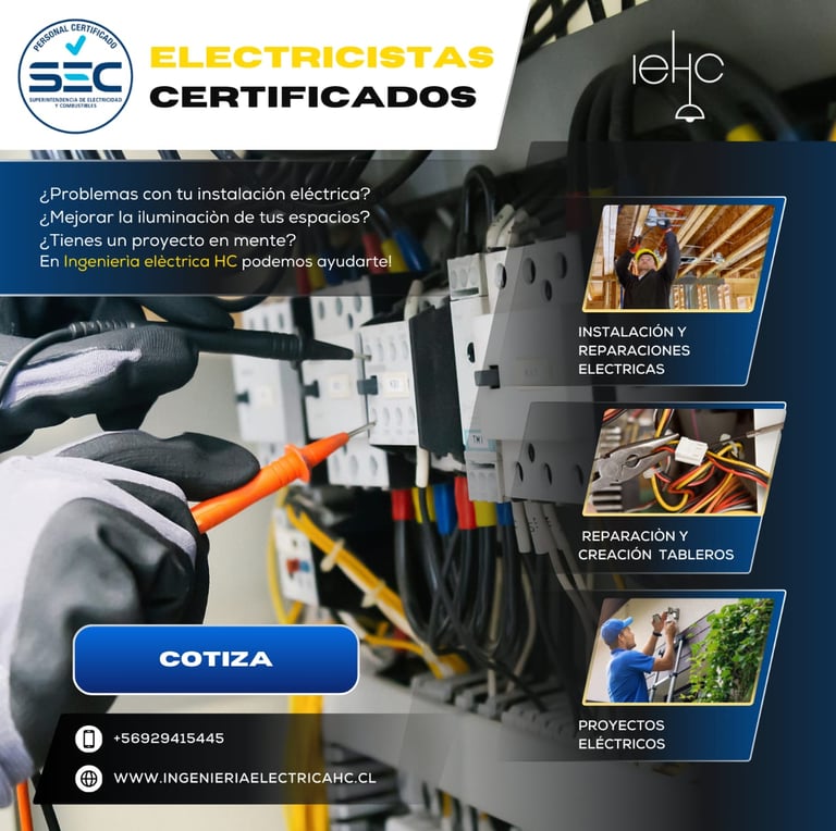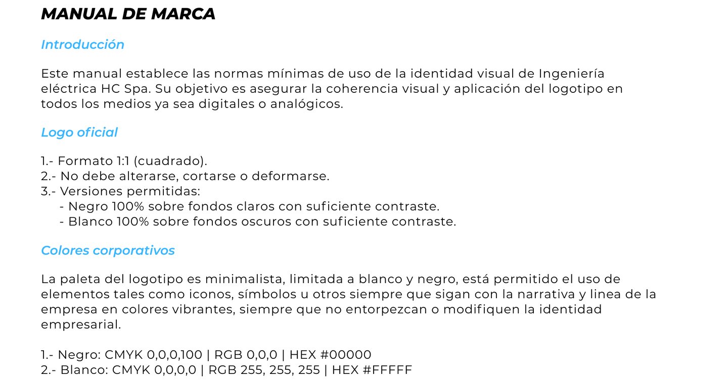 Ingeniería eléctrica HC es una empresa dedicada a prestar servicios eléctricos, participé en su creación en 2023, siendo socio, community manager, director de branding y encargado de proyectos.